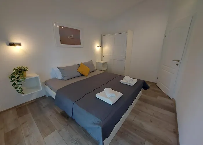 Als u een vroege vlucht hebt vanaf Medulin, ligt 1-slaapkamer Apartmani Katarina op 15 km van Pula. Het appartement van 43 m^2 heeft een terras met uitzicht op de tuin